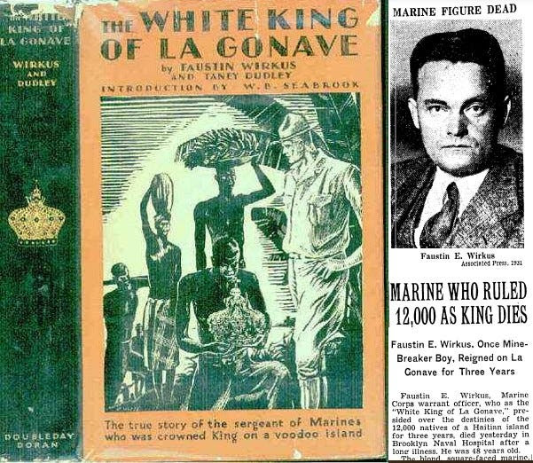 In another example of “furtherance of conspiracy,” Thomas and Weisenburg “engaged in Haitian Creole language training for the purpose of facilitating their armed coup plot.” (Another cruising guide author based in the Dominican Republic, Bruce Van Sant once wrote, “Creole sounds to a non-speaker as if it only has syllables like la, ba, oo and oh. Haitians also have a penchant for dramatizing everything with real OH’s.”) If you’ve gotten this far into the story, prepare to be rewarded—something from my research on Gonâve deserves to be a Tom Hanks mini-series. This is a forgotten memoir authored by one of the most fascinating non-commissioned officers ever to serve in the U.S. Marine Corps—Faustin Edmond Wirkus. Wirkus’ unit was part a force of Marines that occupied Haiti for 19 years, beginning in July 1915. During his deployment Wirkus was engaged in fighting anti-government insurrectionists, at which he excelled, in part because he learned to speak the Haitian Creole language. The Only Marine To Become a KingBefore headlines about Thomas and Weisenburg, the only time Gonâve had ever made news in the U.S. may have been accounts of Wirkus’ adventures there. Which made me wonder whether part of the 55 GB of data in the goverment evidence against Thomas and Weisenburg is a copy of Wirkus’ 1931 book “White King of Gonâve,” which you can download here. The writing is superb and surprisingly modern to the ear.