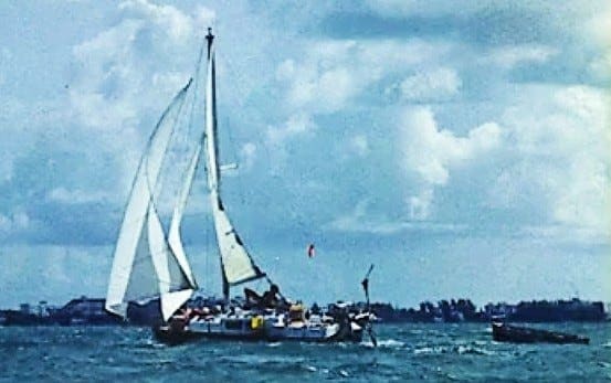 Okay, there were dozens of military offices to enter and exit, after which our wallets were emptier but pockets stuffed with documents. The boats tonnage had to be calculated, which I learned was an acrobatic feat to determine volume not weight. I think we weighed something like the Egyptian feather by that time. We’d eaten and shared everything we brought from Miami.